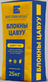 ISO: 9001, 14001, 45001 олон улсын стандартыг нэвтрүүлсэн, MNS-6424:2013 стандартын шаардлага хангасан хуурай хольцийн үйлдвэр юм.Блокны цавуу нь цементэн суурьтай, нэмэлт полимер орцтой хуурай хольцын бүтээгдэхүүн юм. Барилгын гадна ба дотор ханын өрлөгийн ажилд хэрэглэнэ. 25кг савалгаатай хольцийг 6-8 м2 талбай явна.