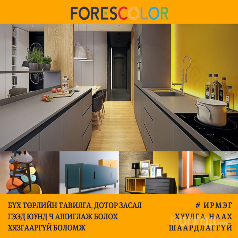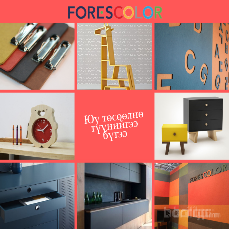 Гал тогооны өрөө, зочины өрөө, хүүхдийн өрөө, оффис өрөөны ширээ, сандал, шкаф, стэнк гээд бүх л төрлийн тавилга хийж болно. Олон төрлийн өнгө холиж амьдралдаа өнгө нэммээр байна уу ? Тэгвэл forescolor хавтан таньд энэхүү боломжийг олгож байна. Хавтанг давхарлаж, хэд л бол хэдэн өнгө нийлүүлэн тавилгаа өөрийн хүссэнээрээ хийж болхоор болжээ.
