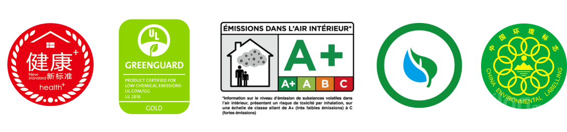 3TREES-н бүх хананы будаг нь UL GREENGUARD гэрчилгээ, Франц улсын орчин доторх агаарын ялгаруулалт A + гэрчилгээ, Хятадын ногоон бүтээгдэхүүний гэрчилгээжүүлэлтэд тэнцсэн бөгөөд эрүүл мэнд + стандарт, FDA стандарт (FDA 21 CFR 175.300) -ийг хангасан болно.