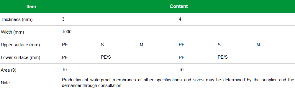 Бүтээгдэхүүн нь GB 23457-2017-ийн Урьдчилан түрхсэн ус нэвтрүүлдэггүй хуудасны Р хэлбэрийн мембранд тавигдах шаардлагыг хангасан болно.
