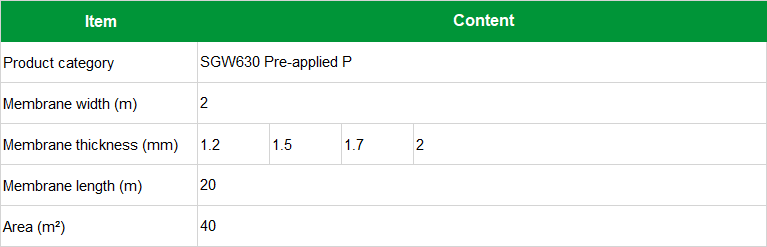 SGW630 асфальтгүй суурьтай макромолекулын өөрөө наалддаг ус үл нэвтрэх мембран нь ус нэвтрүүлдэггүй үндсэн давхаргын хувьд тусгай өндөр нягтралтай полиэтилен мембраныг (HDPE) ашигладаг бөгөөд макро молекулын өөрөө наалддаг давхаргын онцлогтой.