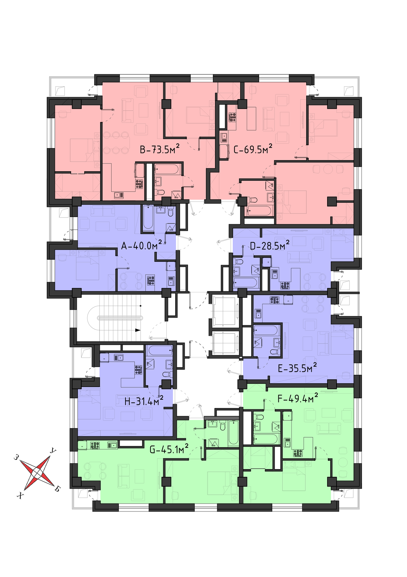 #2өрөө 40,0м2, 45,1м2, 49,4м2