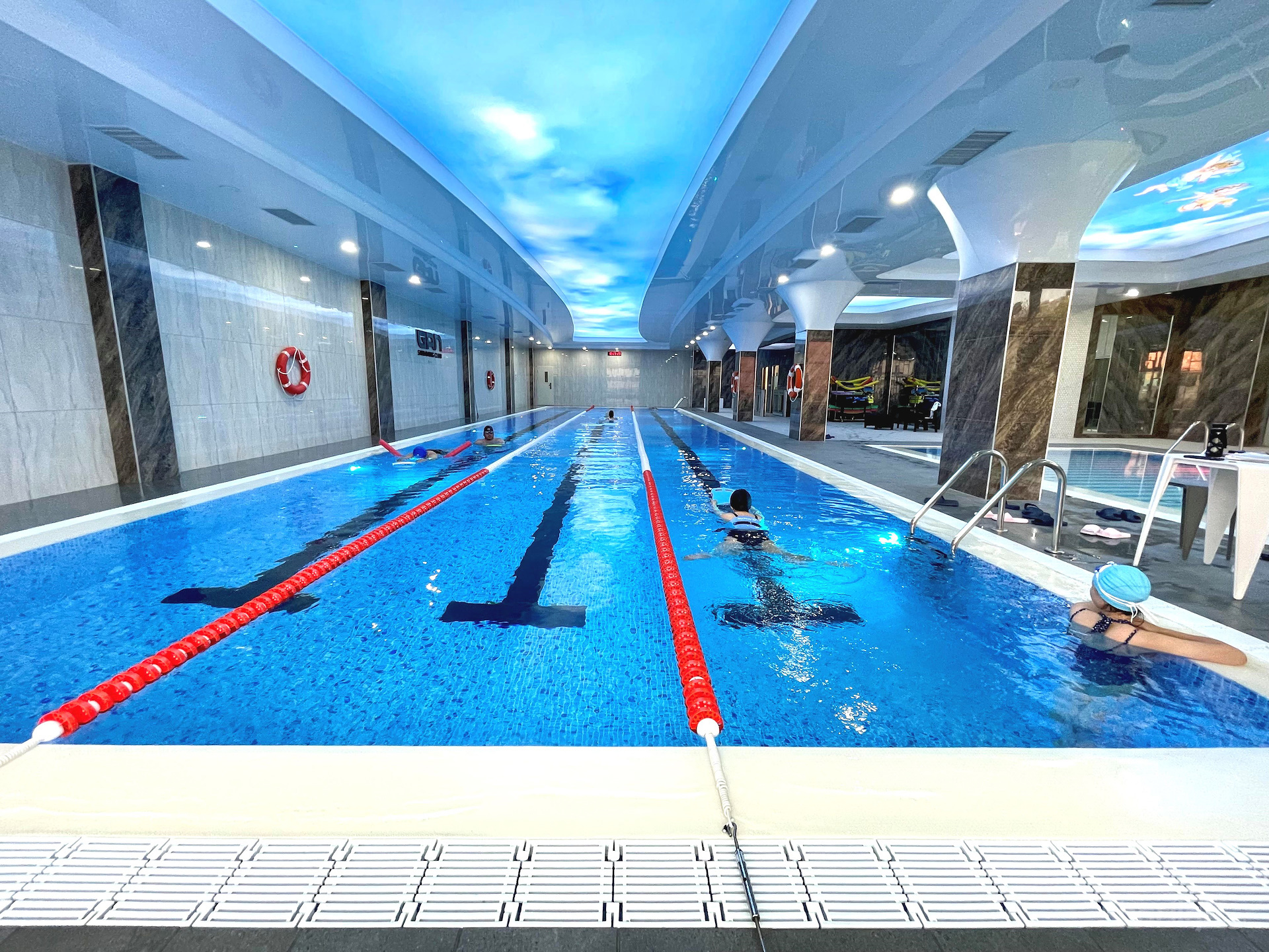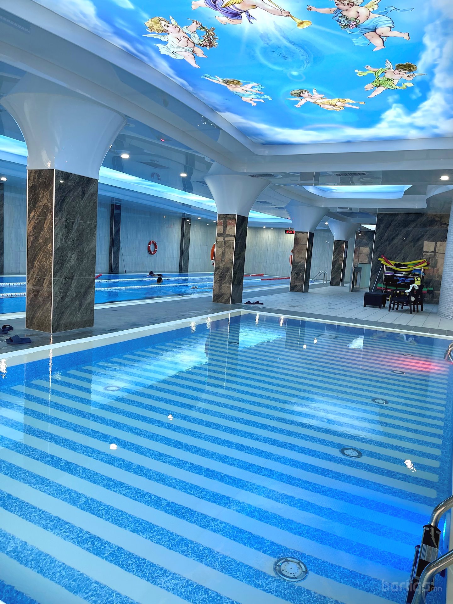 Мөн бассейны санг PVC liner доторлогоо хийж байна. PVC liner-аар бассейны санг доторлох нь ус алдалтаас 100% хамгаалах европт сүүлийн үед их ашиглагдаж байгаа технологи юм.