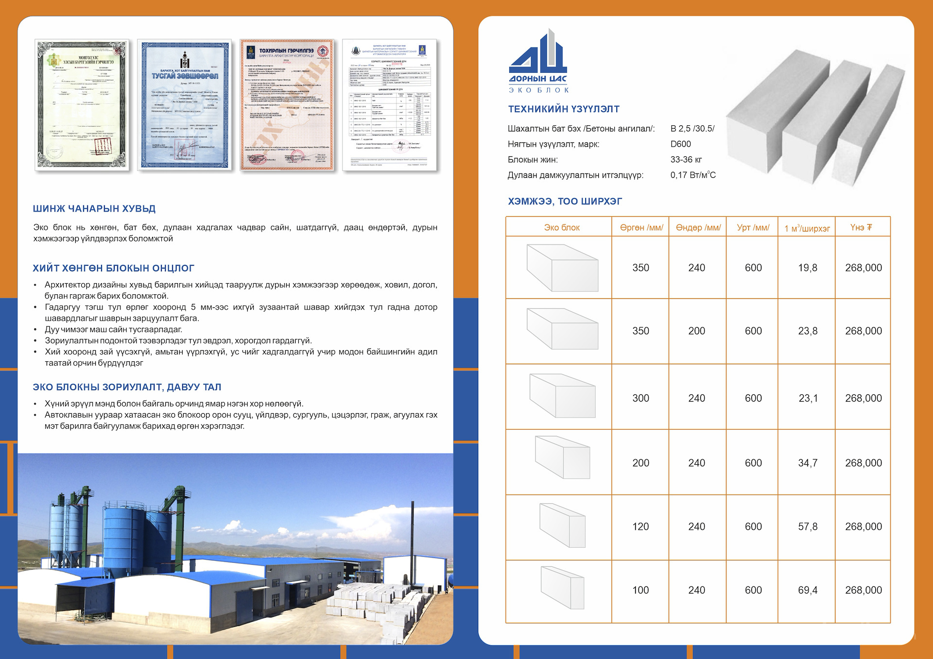Хийт хөнгөн блок, амины болон орон сууцны гадна дүүргэлт, дотор хана тусгаарлах блок үйлдвэрлэж байна.