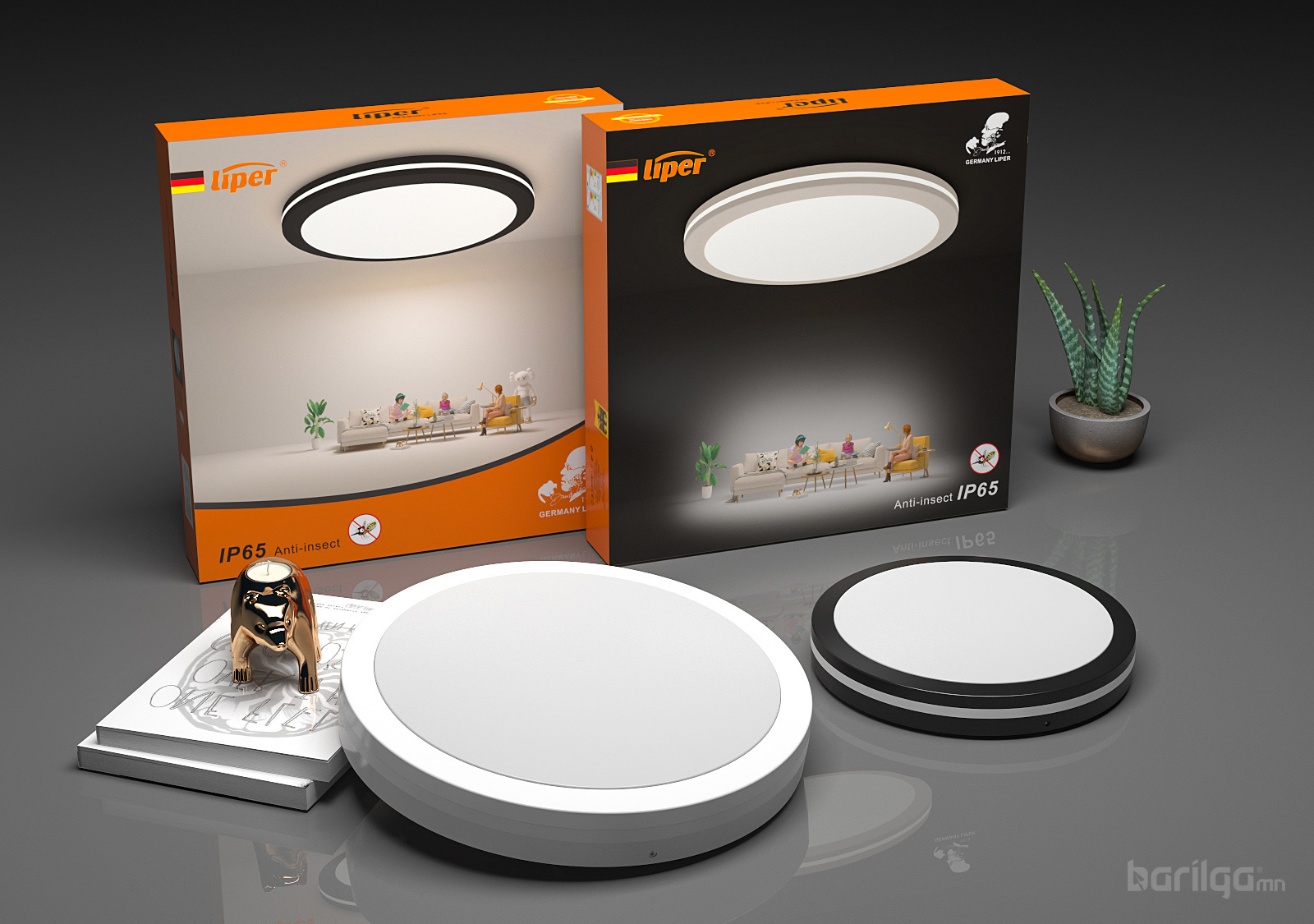 IP65 гэрэл нь ус чийгний бүрэн хамгаалалт бүхий гоёмсог дугуй гэрэл бөгөөд хажуу талдаа нэмэлт гэрэлтэй. Ялаа шумуулны бүрэн хамгаалалттай энгийн гэрэлийн лампанд маш их хэмжээгээр хорхой шавьж орж үхдэг харин энэ гэрэл байгаль экологид ээлтэй бүтээгдсэн.