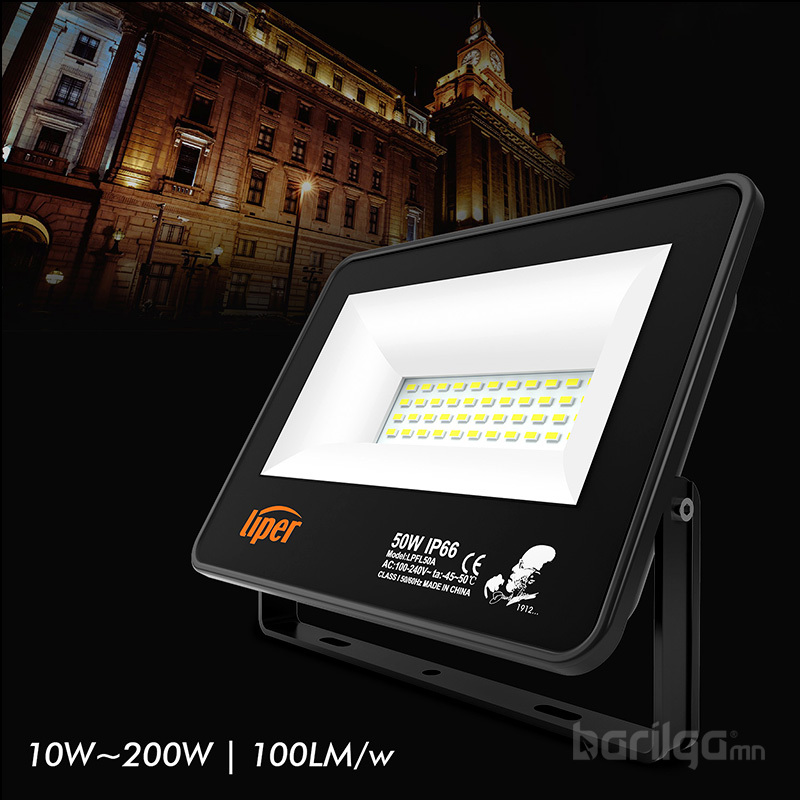 LED прожектор нь овор хэмжээ бага, фасадны гэрэлтүүлэг, цэцэрлэг, талбай болон бусад гадаа гэрэлтүүлэгт өргөн хэрэглэгддэг. Зах зээлд олонд танигдсан IP үнэлгээ нь IP65 байдаг бол манай гэрэл нь IP66 юм.