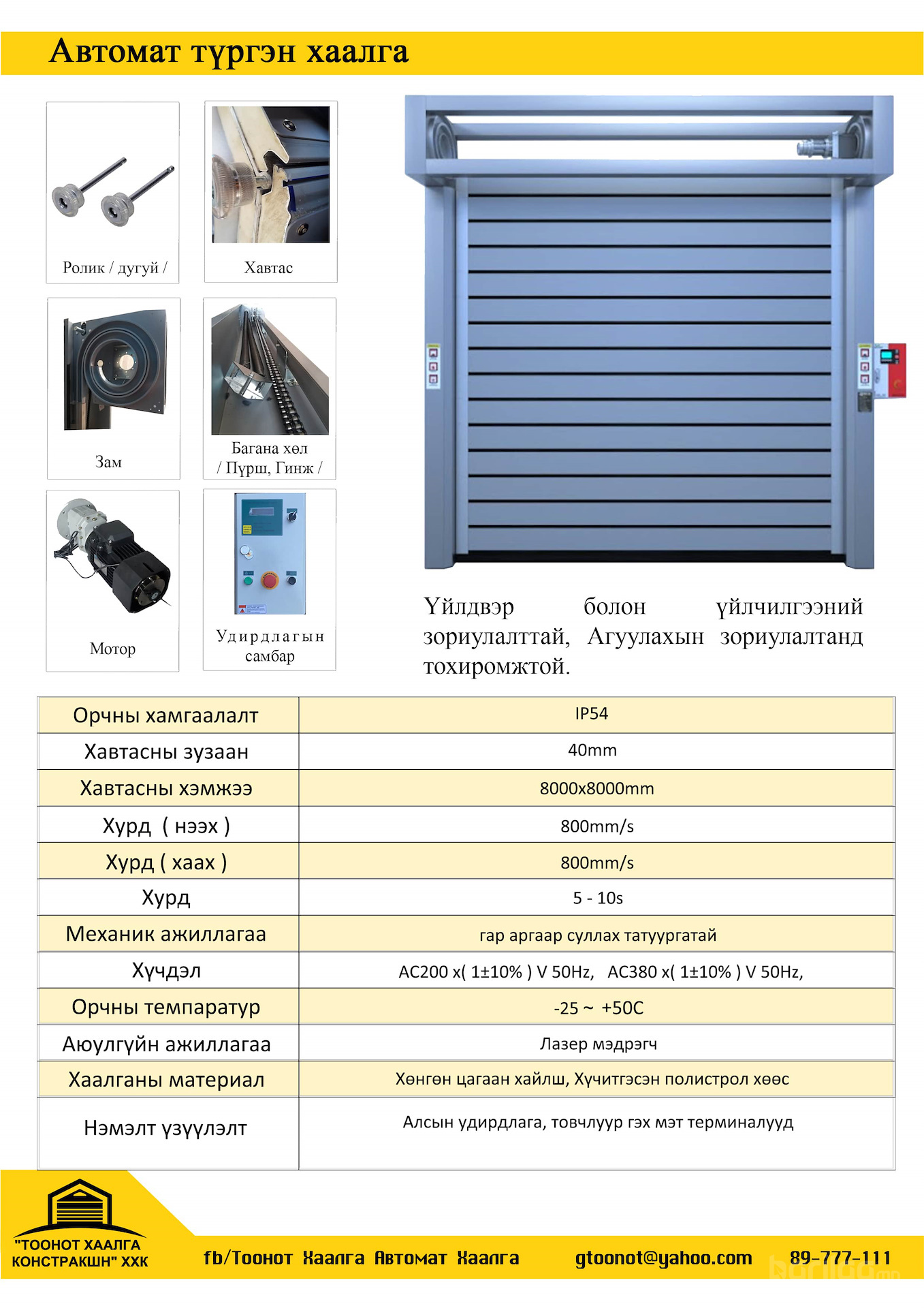 Үйлдвэр болон Үйлчилгээний зориулалтаар ашиглах боломжтой. нээлтийн хурд 5сек.