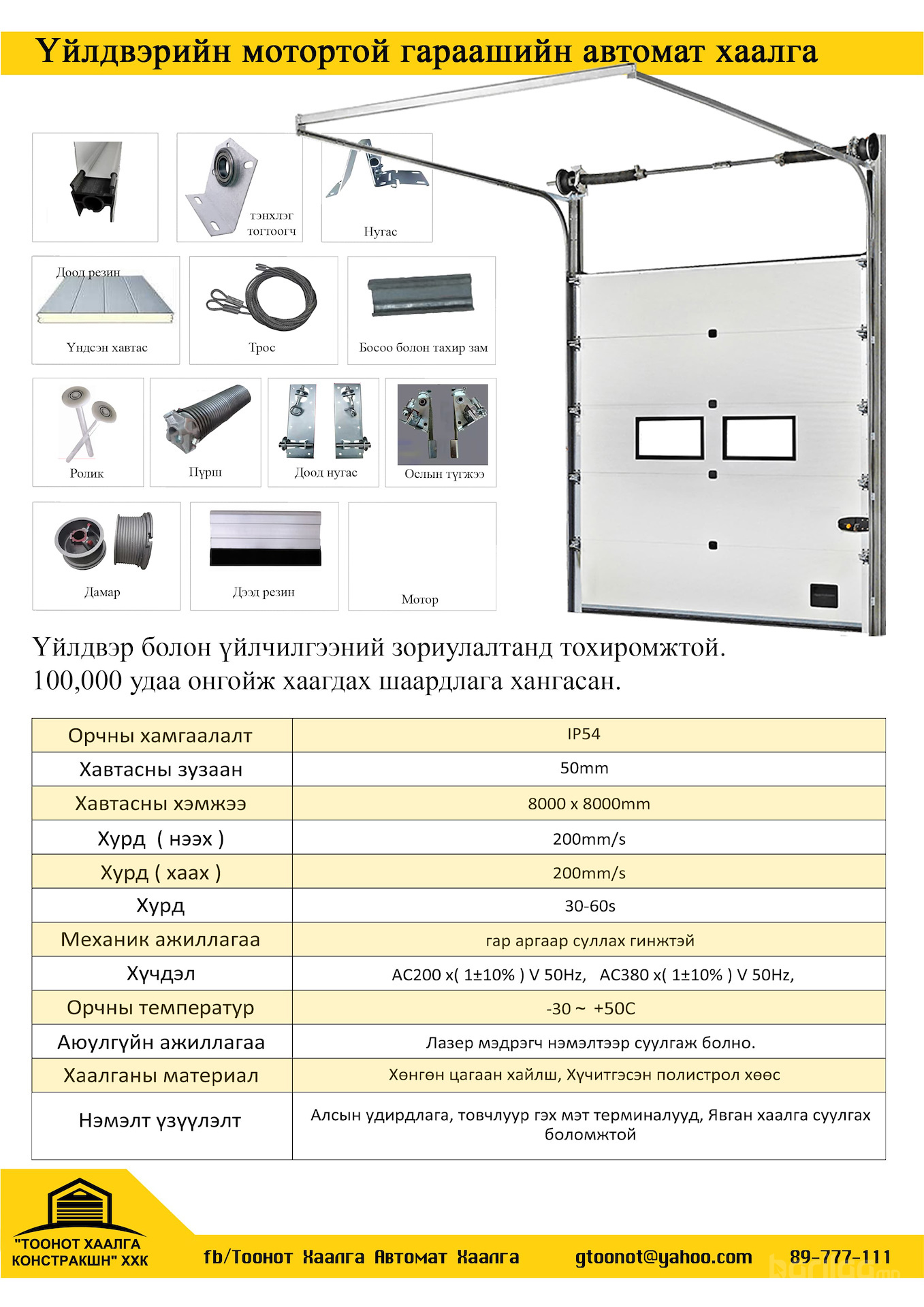 Үйлдвэрлэл үйлчилгээний зориулалтаар болон орон сууц хотхоны нэгдсэн гараашд тохиромжтой. 5см-н зузаан хавтастай. бэлэн байгаа өнгөний сонголт: цагаан, бор, хар саарал