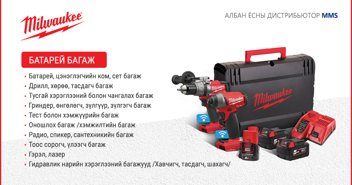 ЦАХИЛГААН БАГАЖ ХЭРЭГСЛИЙН ҮЙЛДВЭРЛЭЛЭЭР ДЭЛХИЙД ТЭРГҮҮЛЭГЧ MILWAUKEE