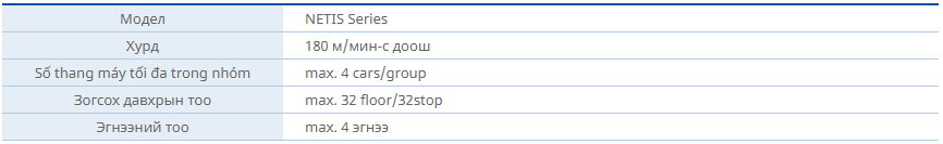 NETIS Product нь лифтний стандартад тохирсон design-г хангаж, лифтний хянах механизмын хяналтын стандарт үзүүлэлтийг хангах бүтээгдэхүүн юм.