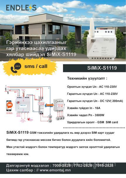 Simix S-1119 DIN Зам дээр суудаг GSM тэжээлийн удирдлага нь GSM SIM картаар ажиллаж гар утаснаас залгаж салгаж эсвэл мессеж бичиж цахилгааныг залгаж/салгана,