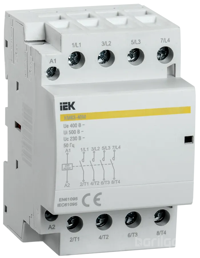 Модулийн цахилгаан соронзон залгуур болох КМ контактор нь хувьсах -400В хүчдэлтэй 50Гц давтамжтай сүлжээний орчинд 63А хүртэлх тавилтайгаар үйлдвэрлэгдэж байна. Контактуудыг мөнгөөр бүрж өгсөн нь халалтыг бууруулж өгсөн ба цахилгаан эрчим хүчний алдагдлыг багасгахад оршино. Энэ нь цахилгаан соронзон залгуураас дуу чимээ багатай. Асаалтын үеийн болон ажлын гүйдлийг багасгаж өгснөөр эрчим хүч хэмнэх боломжтой.