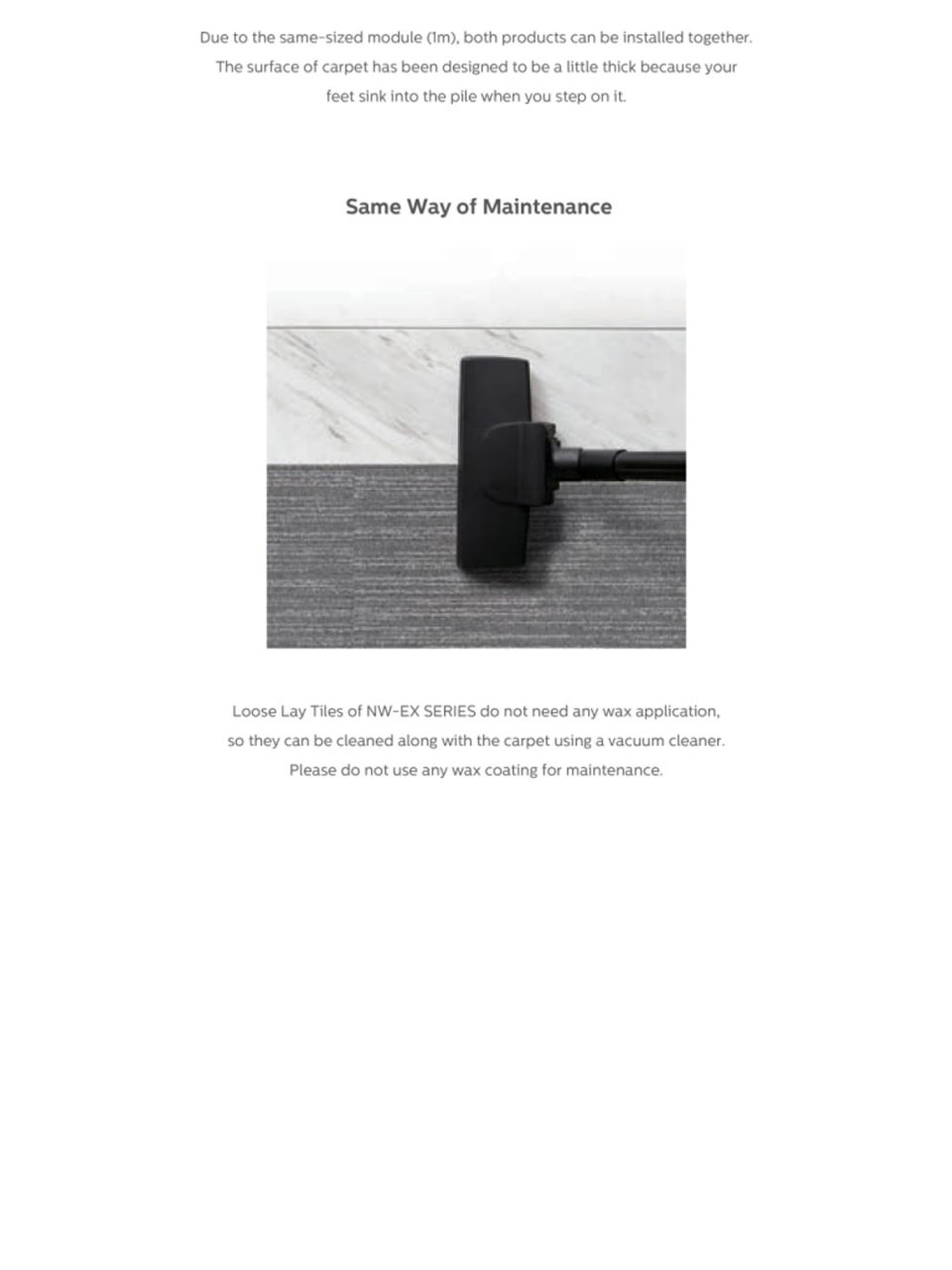 Олон хөлийн ачаалал даах чадвар өндөр, тоосорч, халцарч сэмэрч муухай болохгүй.