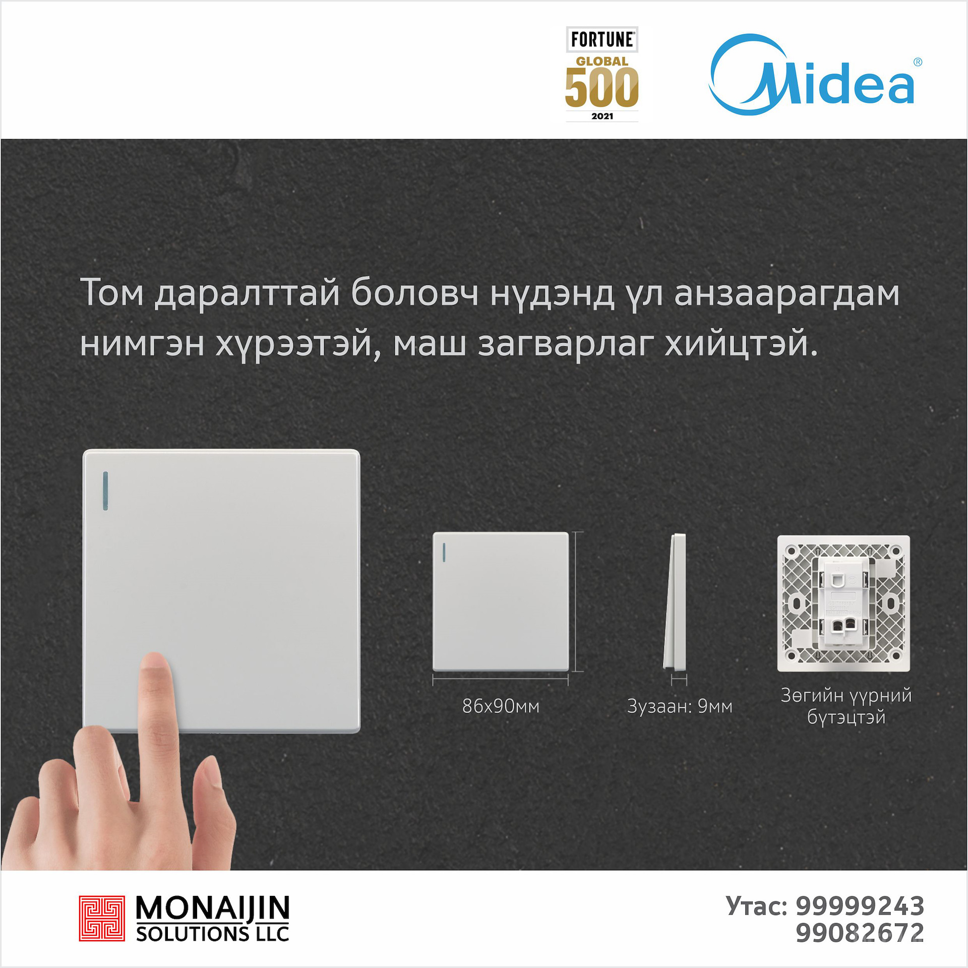 Бүх унтраалгууд 20000+ удаагийн унтрааж, асаах туршилтанд орж баталгаажсан.