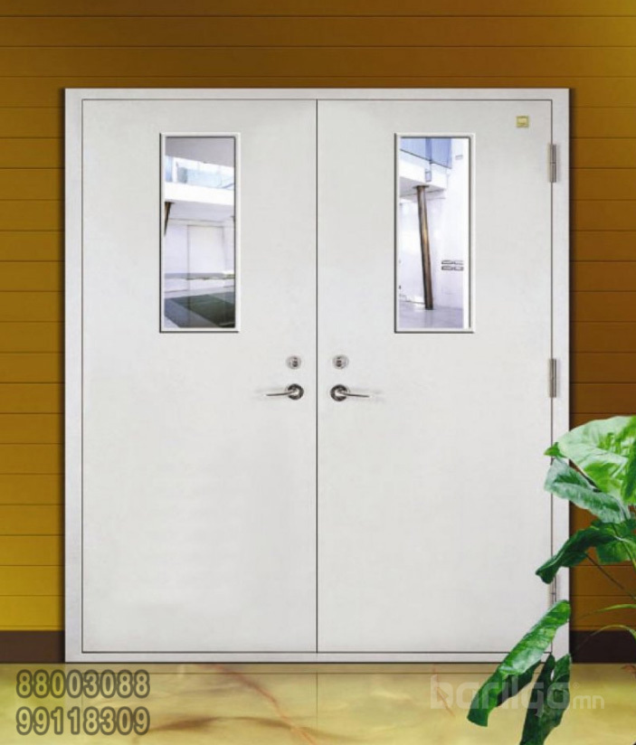 Үзүүлэлт: 60 минут галд тэсвэртэй, Хавтас: 50мм зузаан цайруулсан ган хавтан, 4 талаараа дулаалгын жийргэвч резинтэй, хөндийд эрдэс хөвөн дүүргэлттэй, антипаник бариул болон хаалга хаагч суурилуулахад зориулагдсан дотор талдаа хатуу хавчуургатай Хүрээ: бэхжүүлсэн ган хавтан, босготой Бариул: М1 загварын хар өнгийн хуванцар бариултай, Нугас: хүнд даацын 2 нугастай, Хамгаалалтын боолт: нугастай талд нь 3-ширхэг, Сонголтоор: 300х400мм хэмжээтэй дөрвөлжин цонх, Анти-паник бариул цоож, хаалга тайвшруулагч.