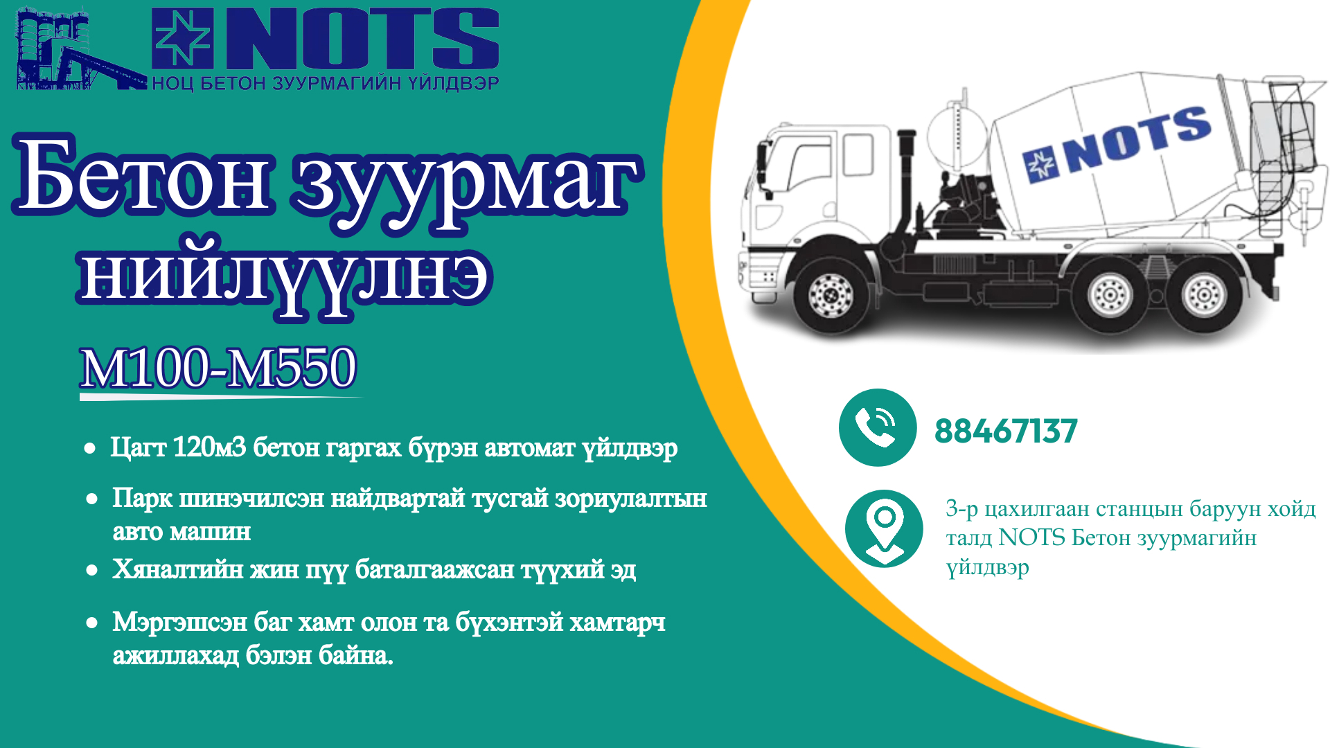 Хаяг: 3-р цахилгаан станцын баруун хойд талд NOTS Бетон зуурмагийн үйлдвэр