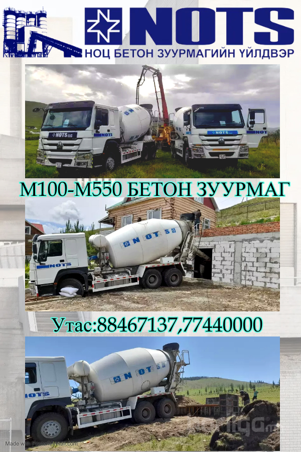М100-550 МАРКЫН БЕТОН ЗУУРМАГТАА ӨДӨР БҮР ЗАХИАЛГА АВЧ БАЙНА.