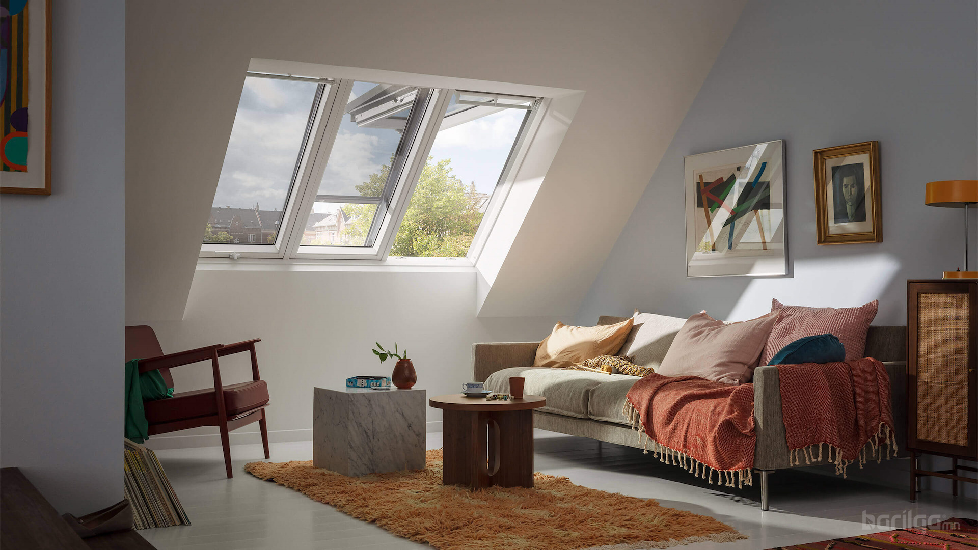 Brighten any room with the VELUX 3in1 roof window. The unique design of the 3in1 roof window invites beautiful daylight into your home and opens up wide, panoramic views. The 3in1 roof window offers you the best deal on daylight too. With three individual sashes set in a single sleek frame, it is more cost-effective than purchasing three individual roof windows of the same size.