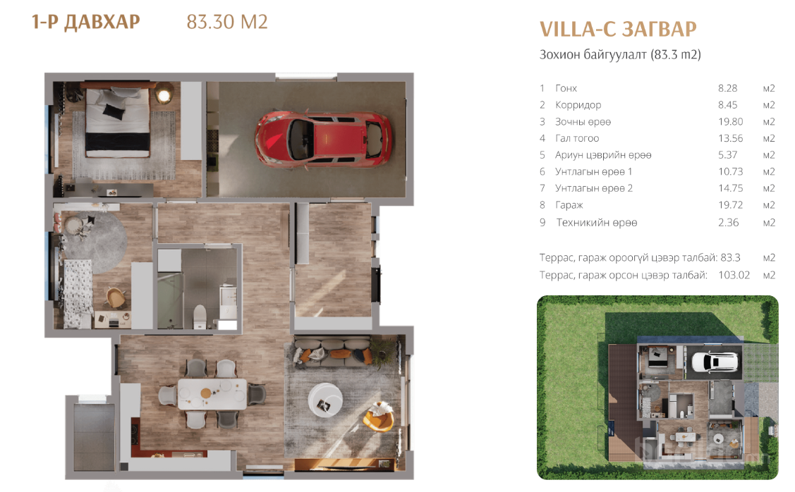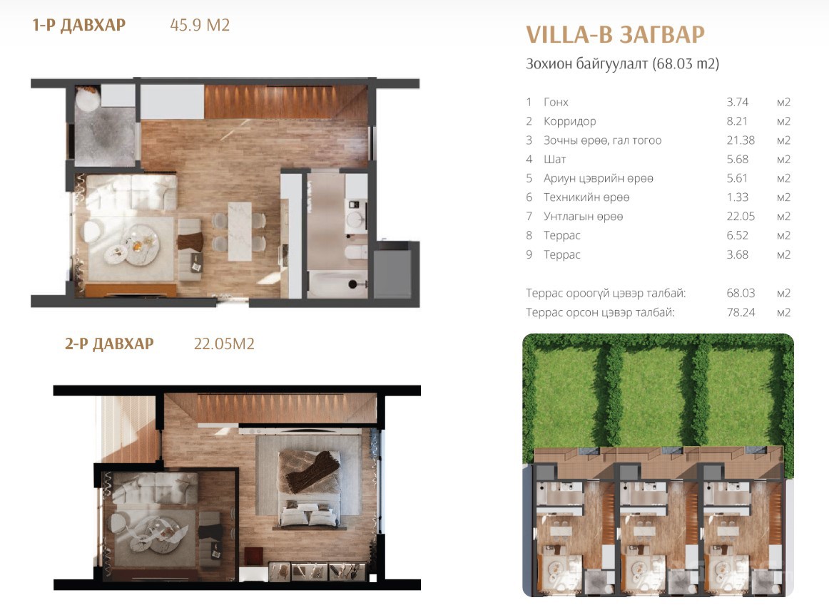 - Айл бүр эдэлбэр газартай, хувийн орон зайг дээд зэргээр хангасан төлөвлөлттэй