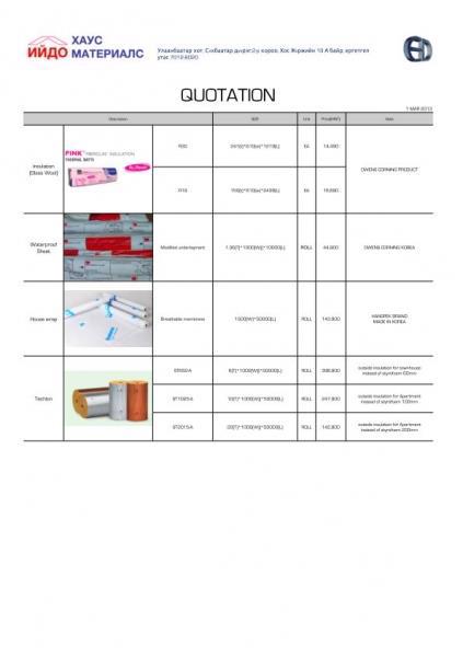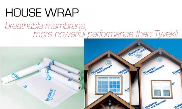 Hanspek Housewrap уур ус тусгаарлагч материал нь салхи, агаарын чийгийг дотогш нэвтрэхээс хамгаалж, обекьт доторх уур чийгийг гадагшлуулах зориулалт бүтэцтэй БНСУ д үйлдвэрлэгдсэн материал .