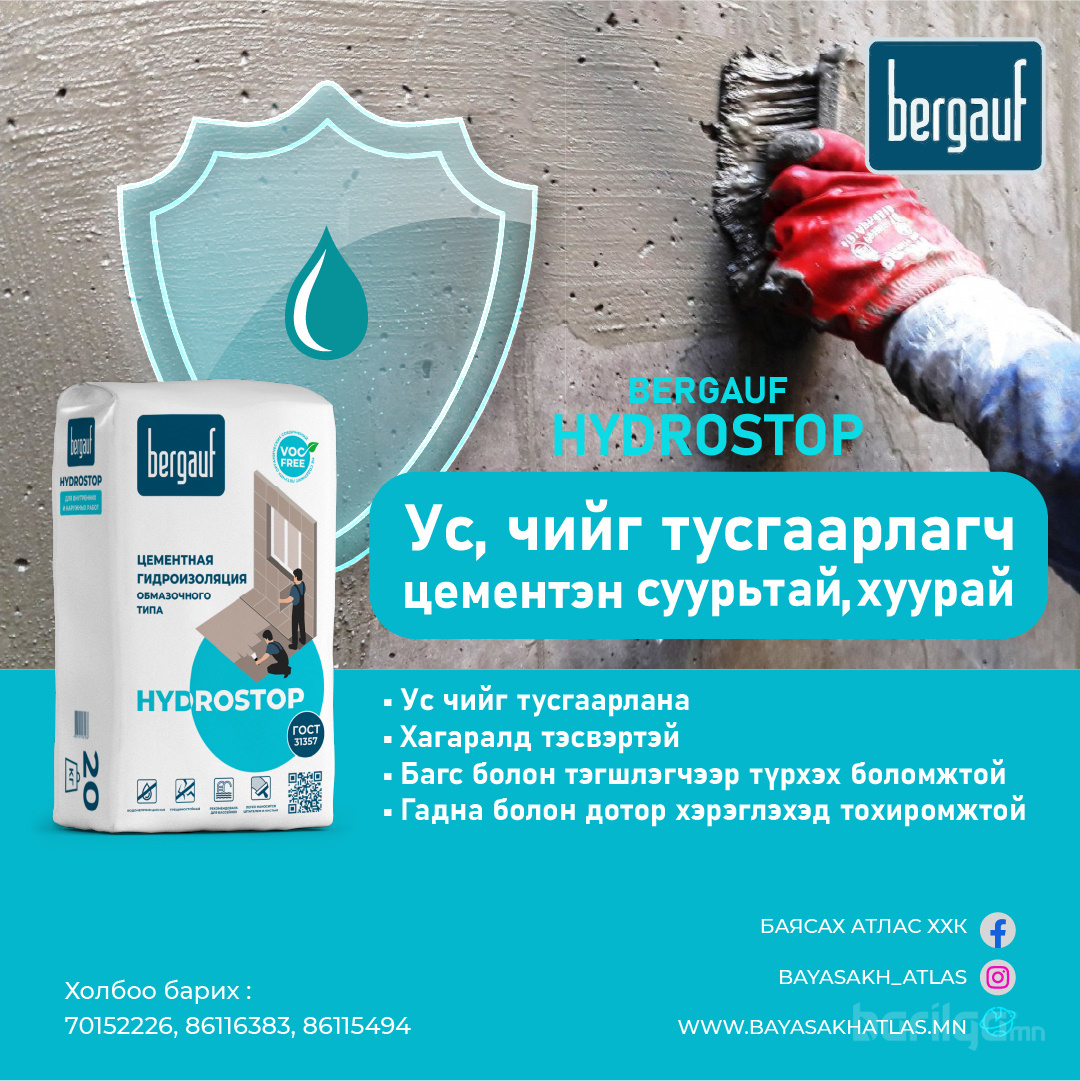- Гадна болон дотор хэрэглэхэд тохиромжтой ЗОРИУЛАЛТ: Ус тусгаарлагчийг барилгын гадна болон дотор талын босооболон хэвтээ тэнхлэгт хөдөлгөөнгүй гадаргуу дээр хэрэглэнэ. Угаалгын өрөө, шүршүүр, усан сан (5м гүн хүртэл) усан ориглуур, усан сан, ус нөөцлөгч, зоорийн давхар болон цоколь, барилгын суурь (доод давхарууд), балкон, террас г.м газруудыг уснаас хамгаалахад ашилгладаг. ЗУУРМАГИЙГ БЭЛТГЭХ: 1) Устай холих харьцаа, зуурмаг бэлтгэх журмыг чанд дагажмөрдөж байж тухайн бүтээгдэхүүний ус тусгаарлах шинж чанар баталгаатай гарах юм. Уусмалыг бэлтгэхийн тулд цэвэр сав, багаж хэрэгслийг ашиглана.