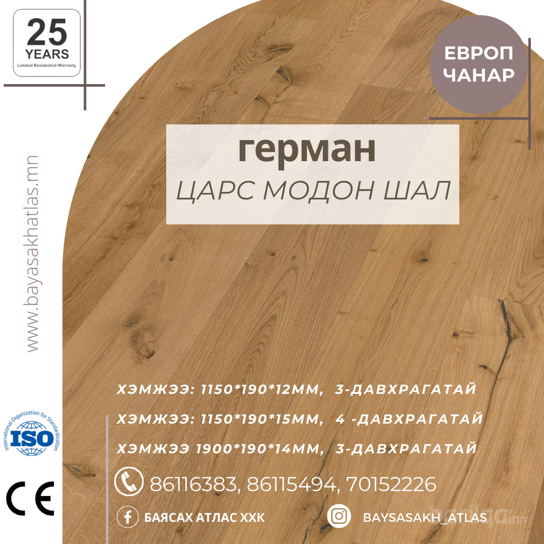 • Хэмжээ: 1150*190*15мм , 4 -давхрагатай