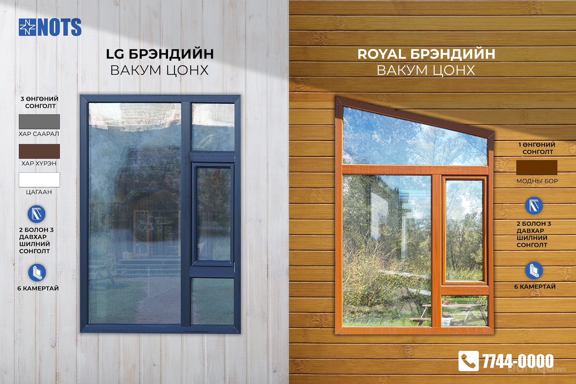 Таны хүссэн хэмжээ, өнгө сонголтын дагуу вакум, металл цонх, дотор хана тасалгаа, хаалга, хаалт, тамбар чанарын өндөр түвшинд үйлдвэрлэж байна.