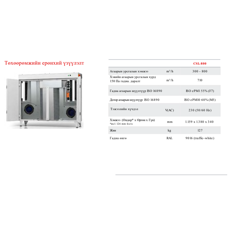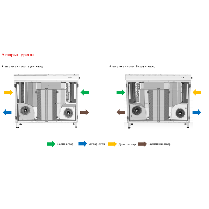 − Агаарын урсгалын эзлэхүүн 800 м 3/ц хүртэл