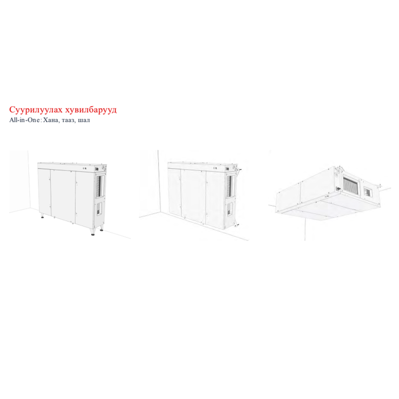 150-300 м3 талбай бүхий бүх төрлийн барилга обьект, оффис, мөн агаарын чанарын шаардлага өндөртэй эмнэлэг, хүүхдийн цэцэрлэг, хүнсний үйлдвэрлэлийн барилга обьектийн агаар боловсруулах төхөөрөмж.