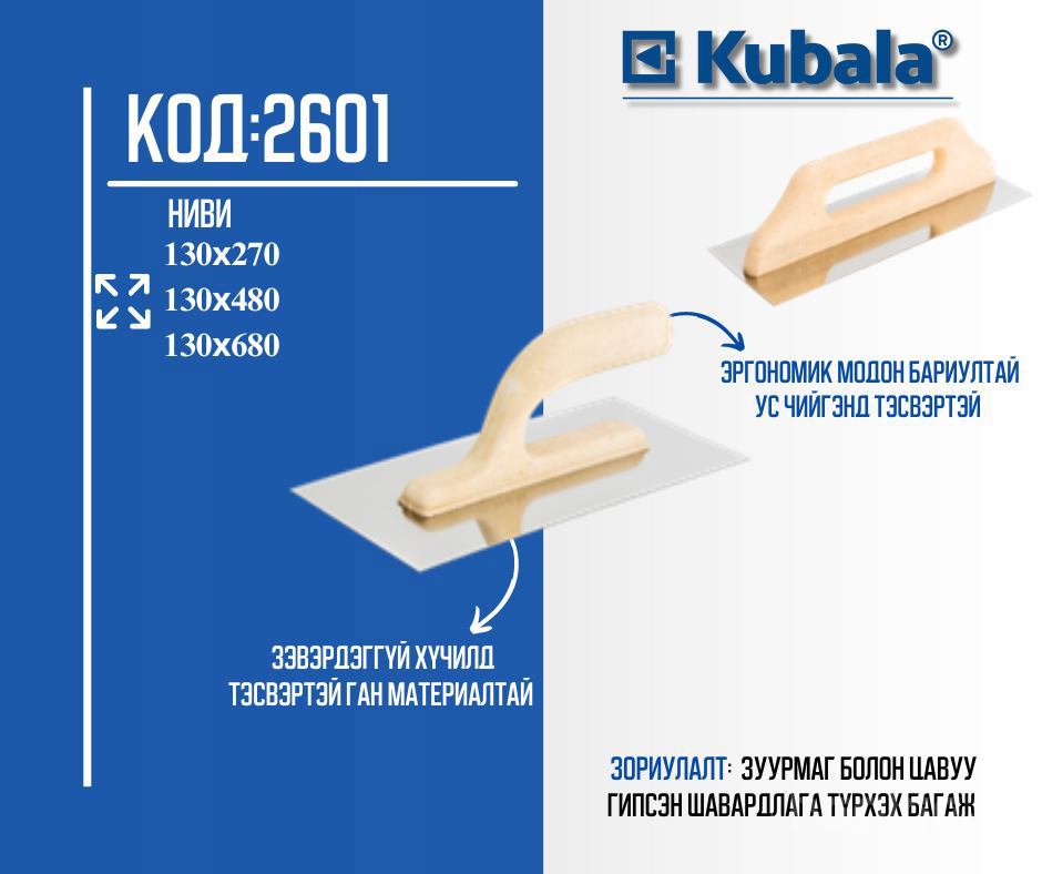 Зуурмаг, цавуу, гипсэн шавардлага түрхэх багаж зэвэрдэггүй хүчилд тэсвэртэй гэн материалтай 0.7мм зузаантай, эргономик модон бариултай ус чийгт тэсвэртэй