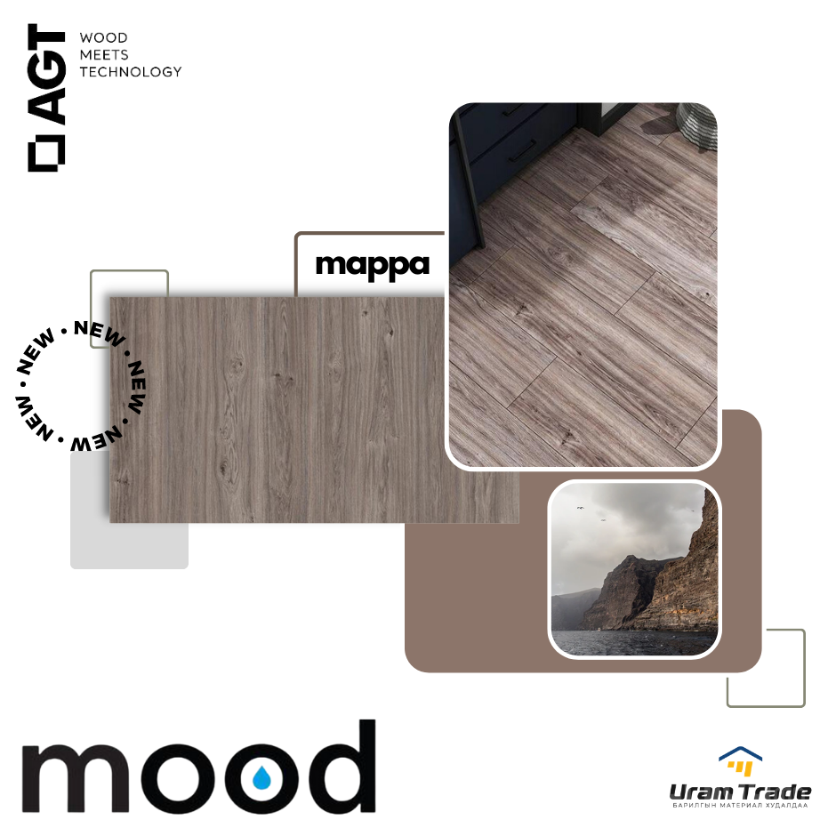 #AGT брендийн 2022 оны шинэ загвар #MOOD серийн ламинатан шал. Чулуу мэт хээ, бөх бат гадаргуу, ус чийгний хамгаалалттай.