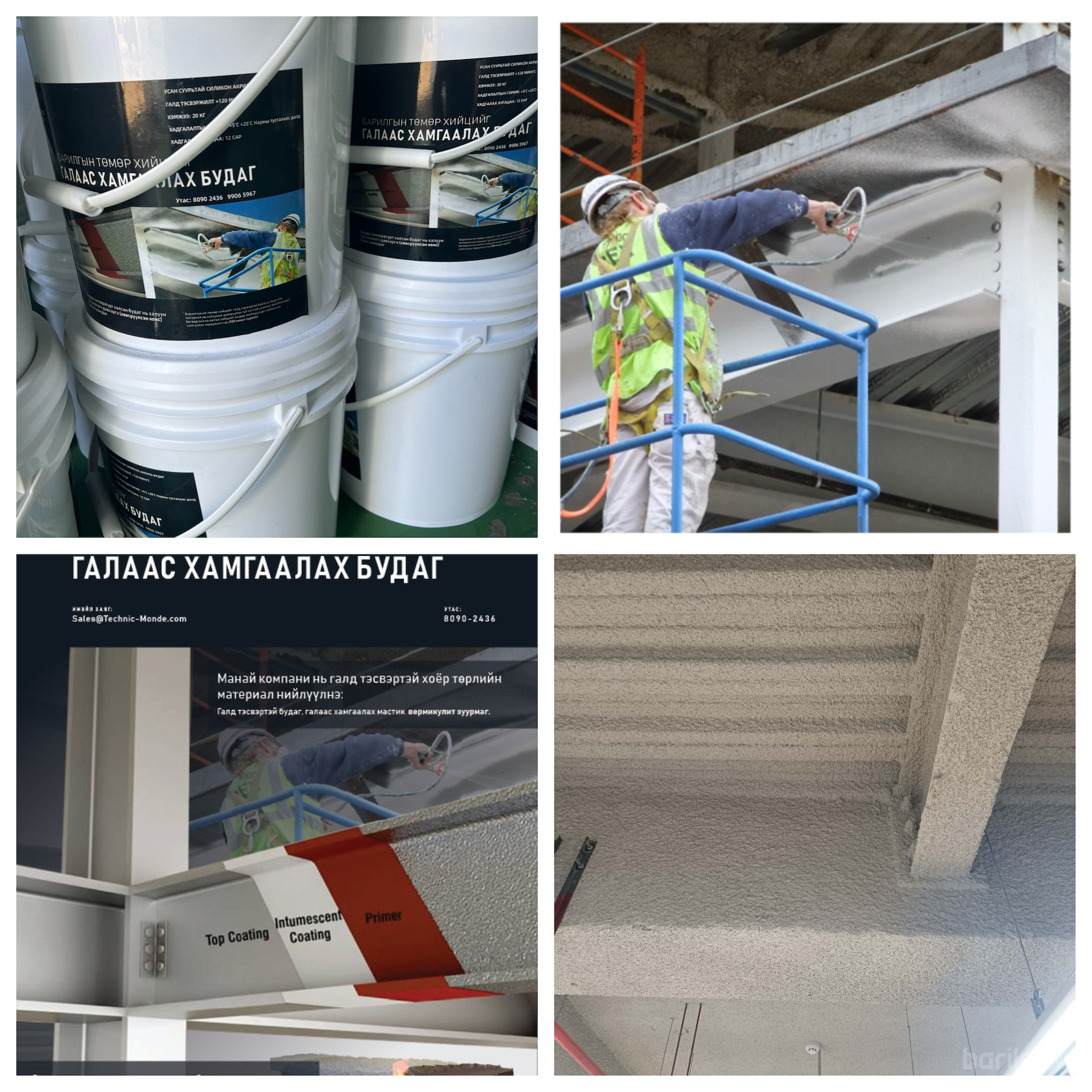 Усан суурьтай, эко уусгагчтай, нимгэн түрхэцтэй, ган хийцийг галаас хамгаалах энэхүү будгийг