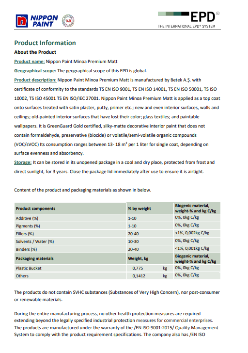 • Биоцид, хүнд металл, дэгдэмхий органик нэгдлүүд (VOC / sVOC) агуулаагүй.