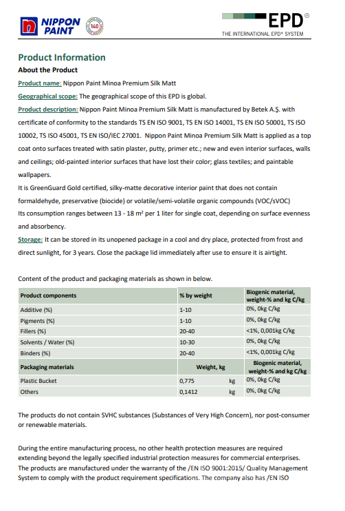 • Биоцид, хүнд металл, дэгдэмхий органик нэгдлүүд (VOC / sVOC) агуулаагүй.