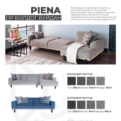 1, 2, 3, 4 хүний суудлын сонголттой хэзээ ч хуучиршгүй загвар мөн хамгийн бат бөх Piena буйдан ![]()
