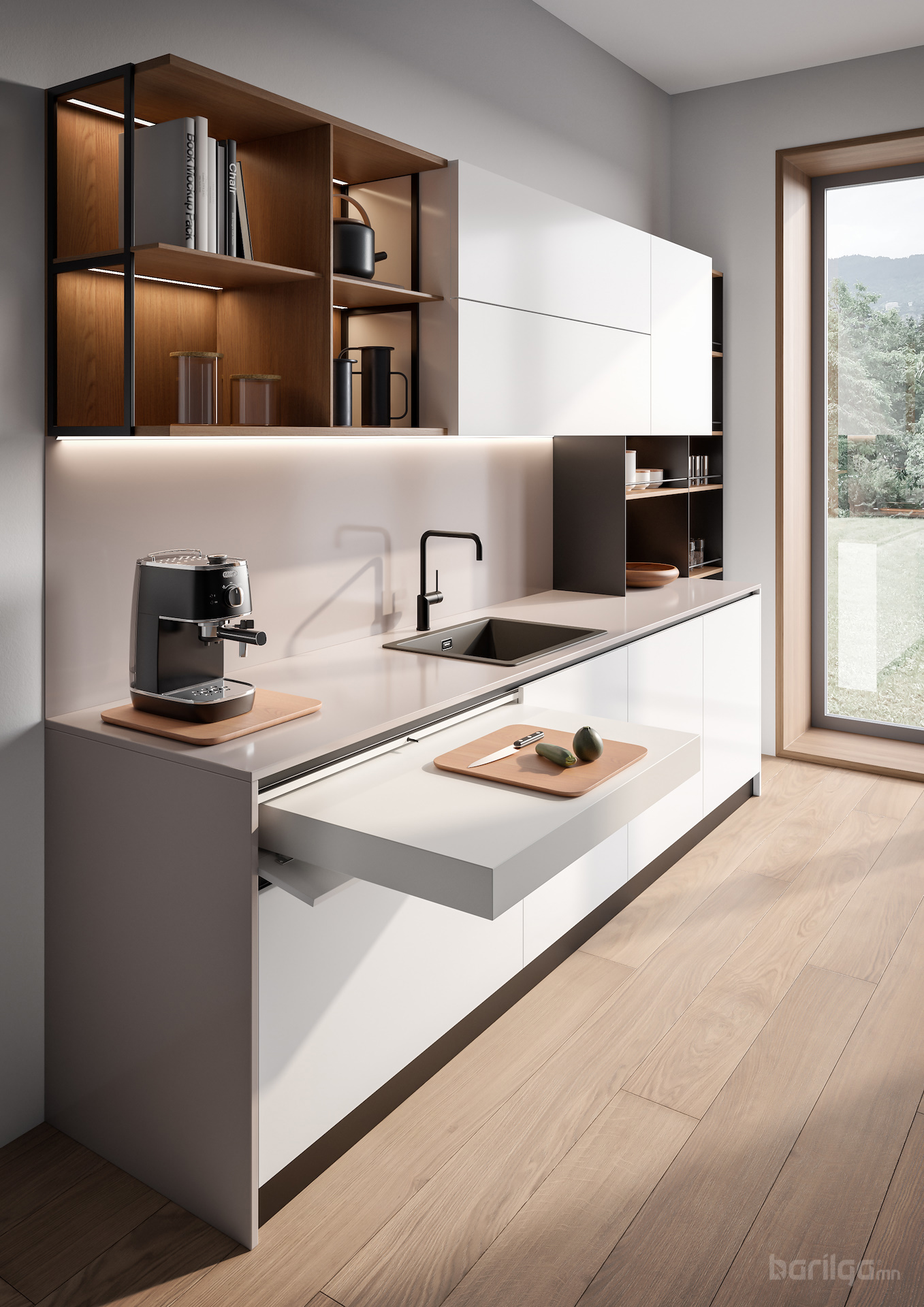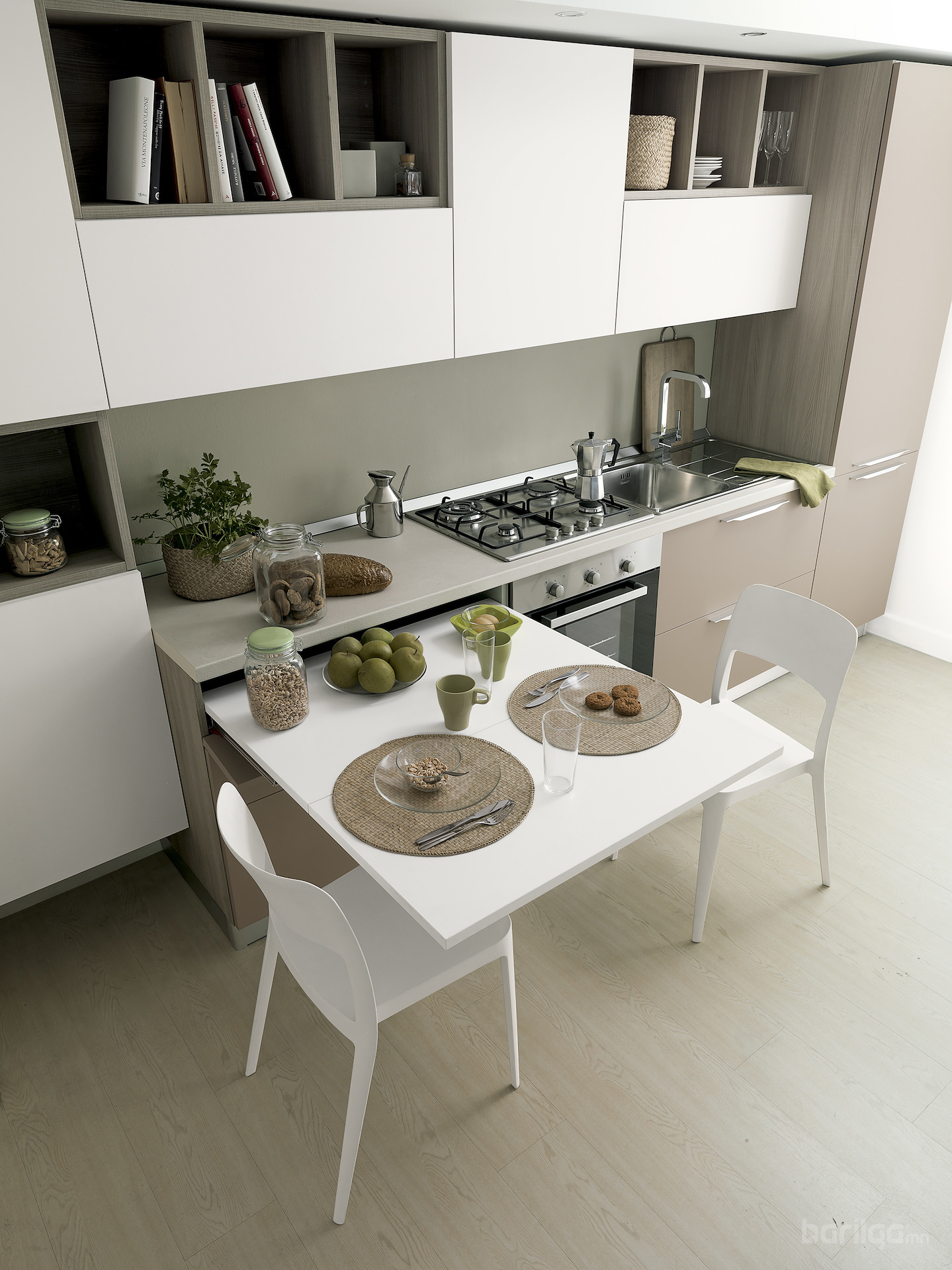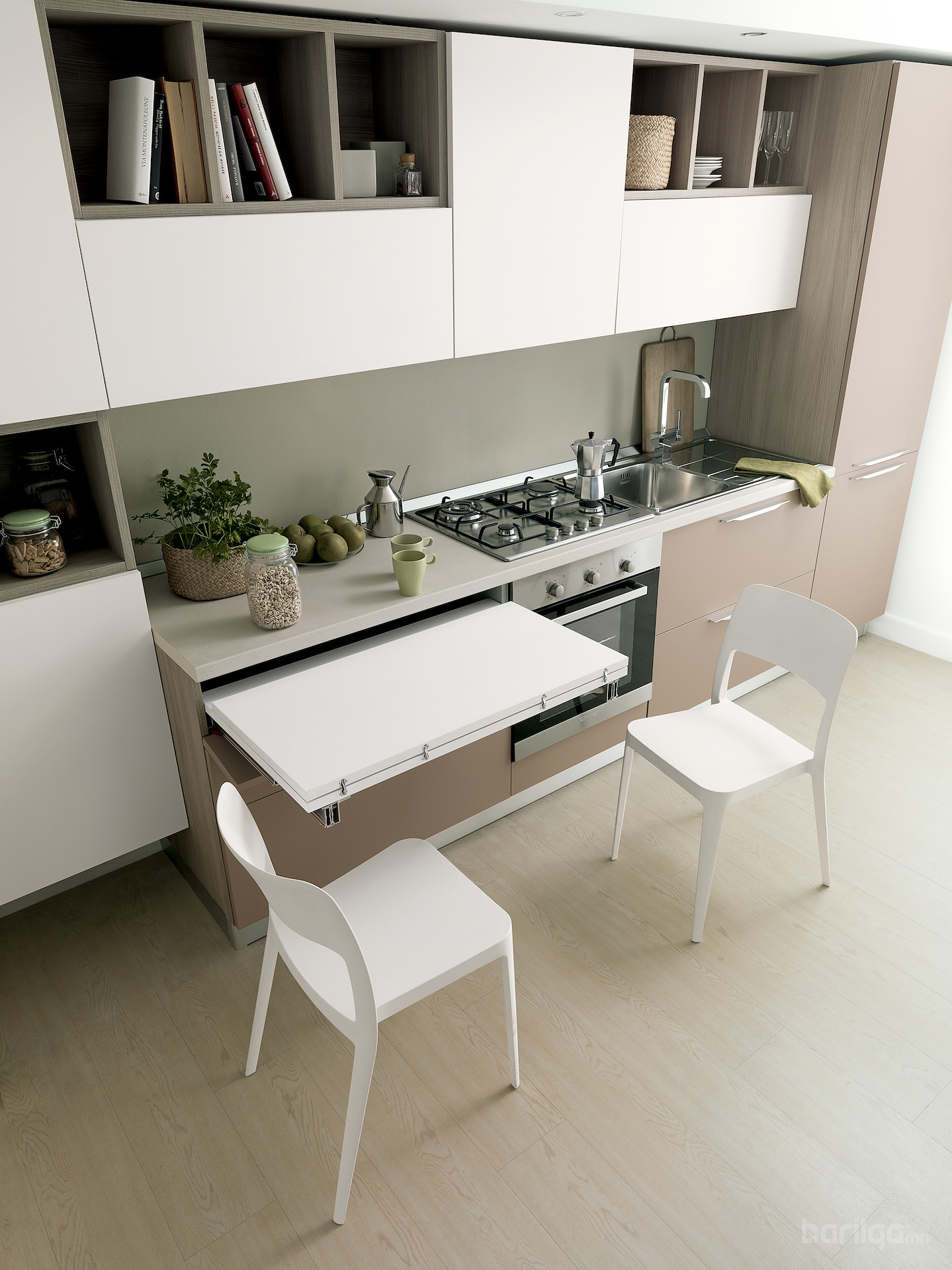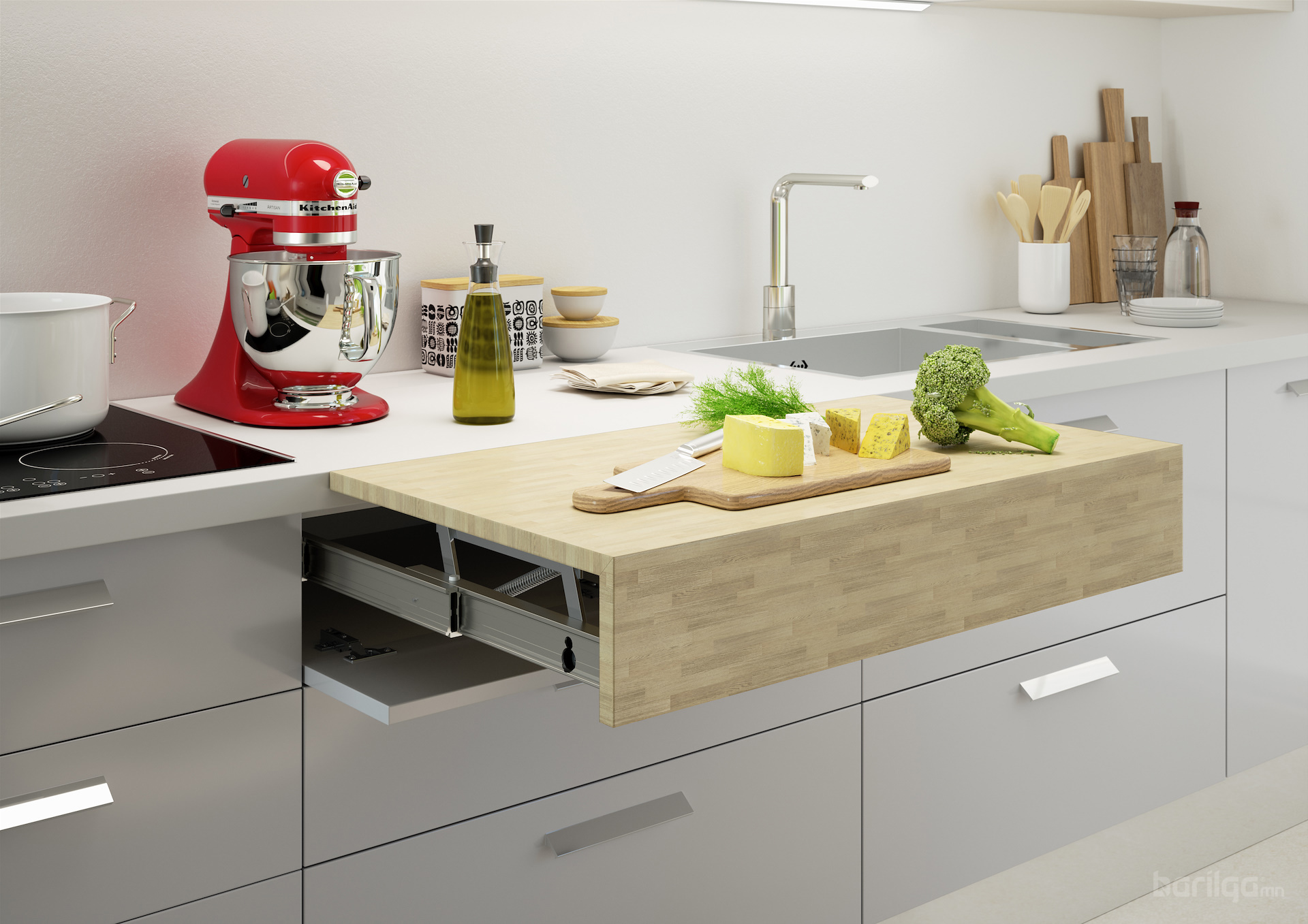 Lunch: Ширээг шүүгээнээс гаргахад Peninsula хэлбэрээр гарч, 60 кг хүртэл даацтай (нийт урт ойролцоогоор 900 мм).