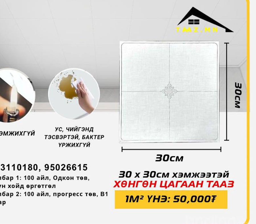 30*30СМ ХЭМЖЭЭТЭЙ ХӨНГӨН ЦАГААН ТААЗ