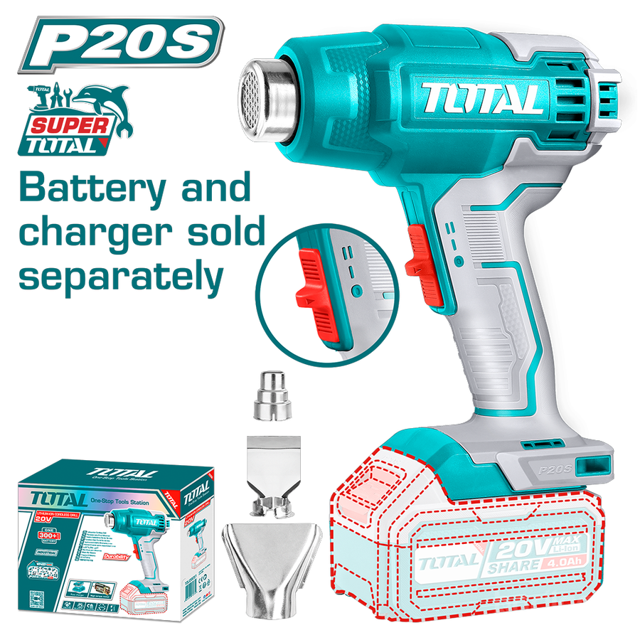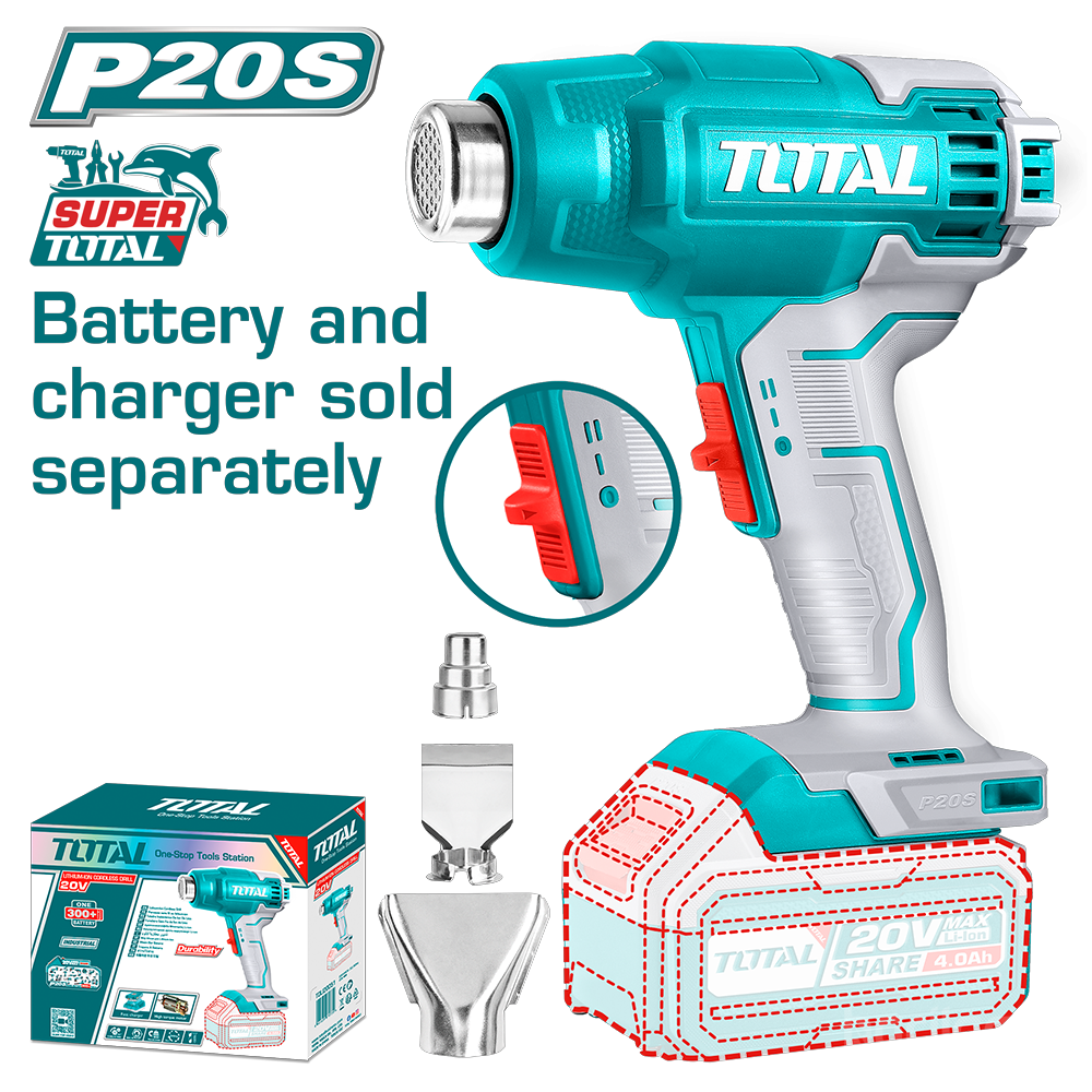 Хүчдэл: 20VТемператур: 300/550°CАгаарын урсгал: 100/200 л/минҮүнд:1 ширхэг бууруулах цорго1 ширхэг цацруулагч цорго1 ширхэг хавтгай цоргоБатерей болон цэнэглэгчийг тусад нь зарнаӨнгөт хайрцагт савласан