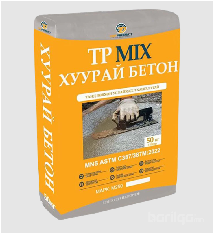 Бетон болон зуурмагт ордог түүхий эдийг элс, хайрга, дайрга цемент, нэмэлт гэх мэт хатаасны дараа зориулалтын холигчоор хольж бетоны орц норм стандартын дагуу хуурайгаар савлан. Хэрэглэгч та бүхэнд хүргэж буй шинэ, шилдэг технологи юм.